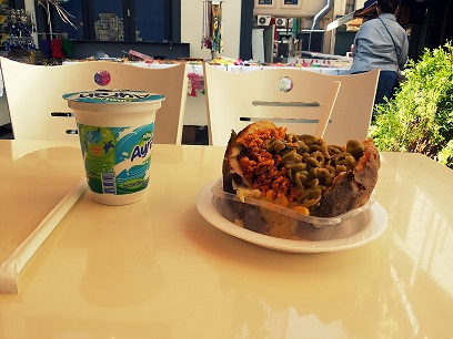 No tramvaja izkāpju mīļi gandrīz latviski skanošā pieturā ar nosaukumu Kabataš un mierīgu soli gar jūras krastu čāpoju caur Bešiktaš (slavenās futbolkomandas mājvietu) uz Ortakoy – rajonu, kas gozējas Bosforas tilta “pēdā” un vilina mani ar savu slaveno kumpir (liles kartupelis pildīts ar visu, ko sirds vēlas – bildes) un vafeļu ielu. Salutinājusi vēderu, nogriežos uz mazas ieliņas (lai man piedod garšīgā turku kafija) Starbucks meklējumos, jo kafiju gribās daudz un MILZĪGU. Un internets par sliktu arī nenāktu!