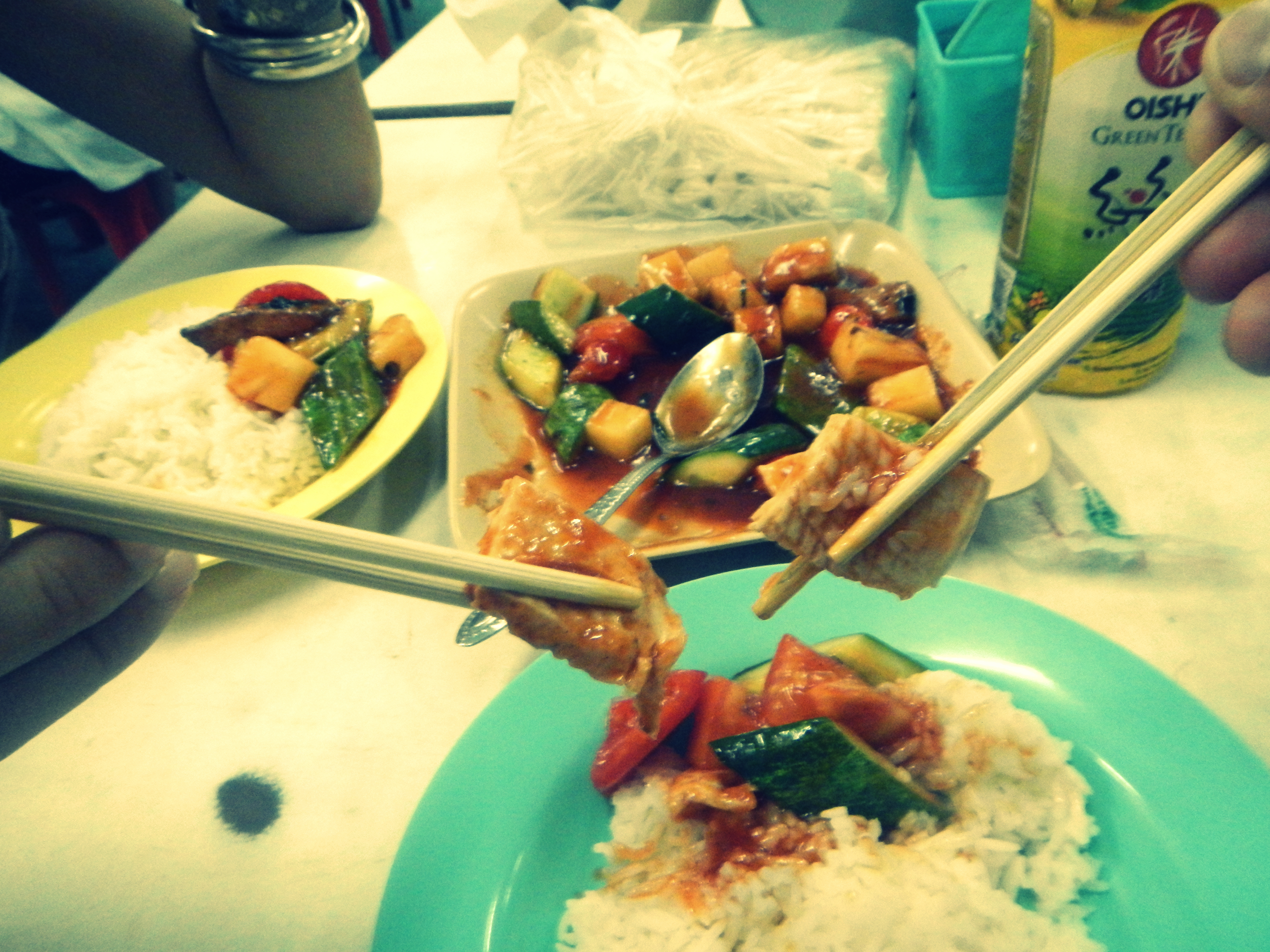 Iepazīšanās numur 3 – ēdiens. Tik ass, ka škiet, ka taizemieši pievieno ekstra čili ārzemniekiem un, aiz stūra noslēpušies, ķiķina par mūsu sviedriem un asarām. Aši vien atradām mums patīkamu veģetāro restorānu ar ēdienu, kam var arī garšu just. Tiesa gan vēlāk Bankokas gaitās turpinājām svīst. Iepazīšanas un centieni adaptēties neveiksmīgi.